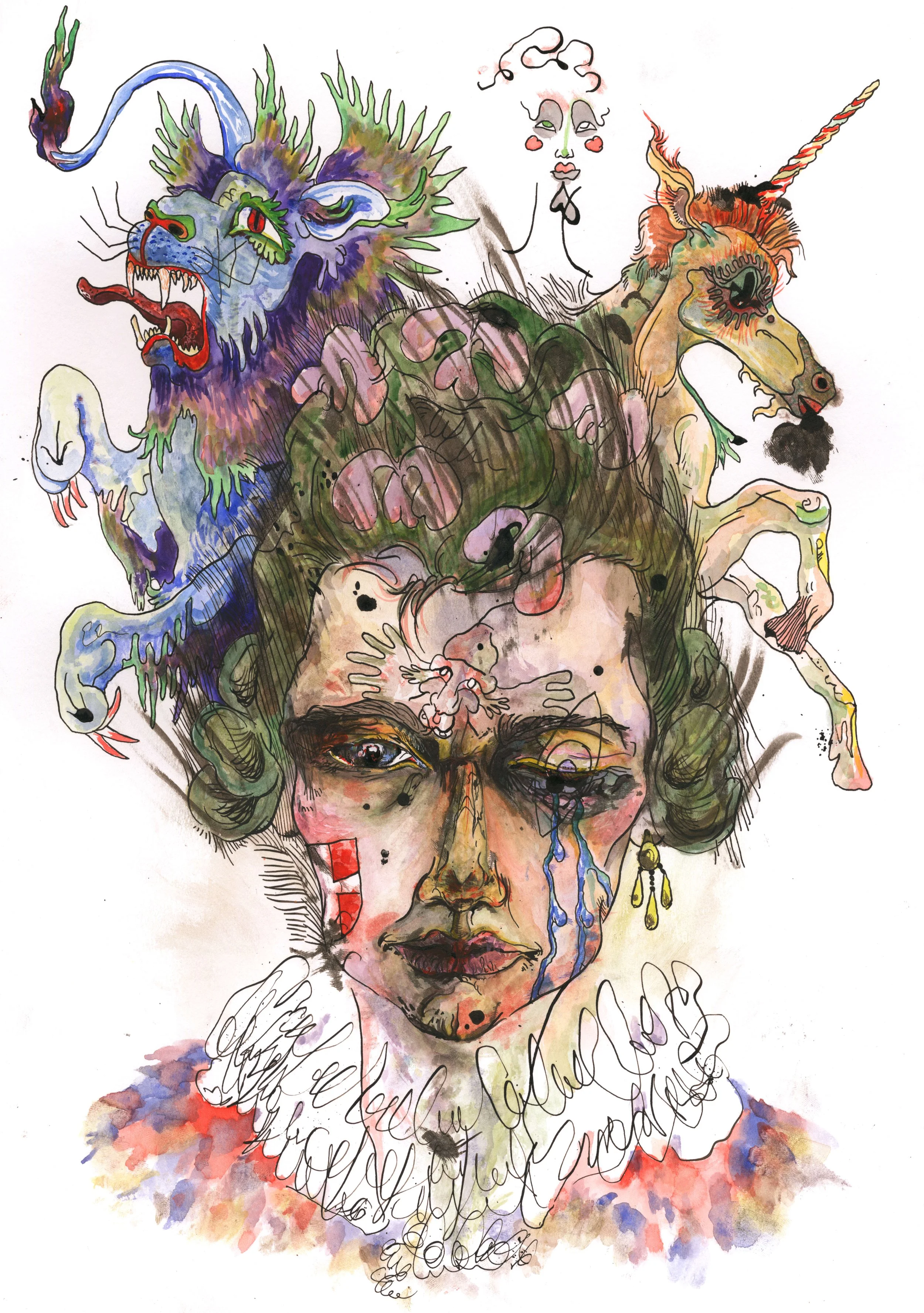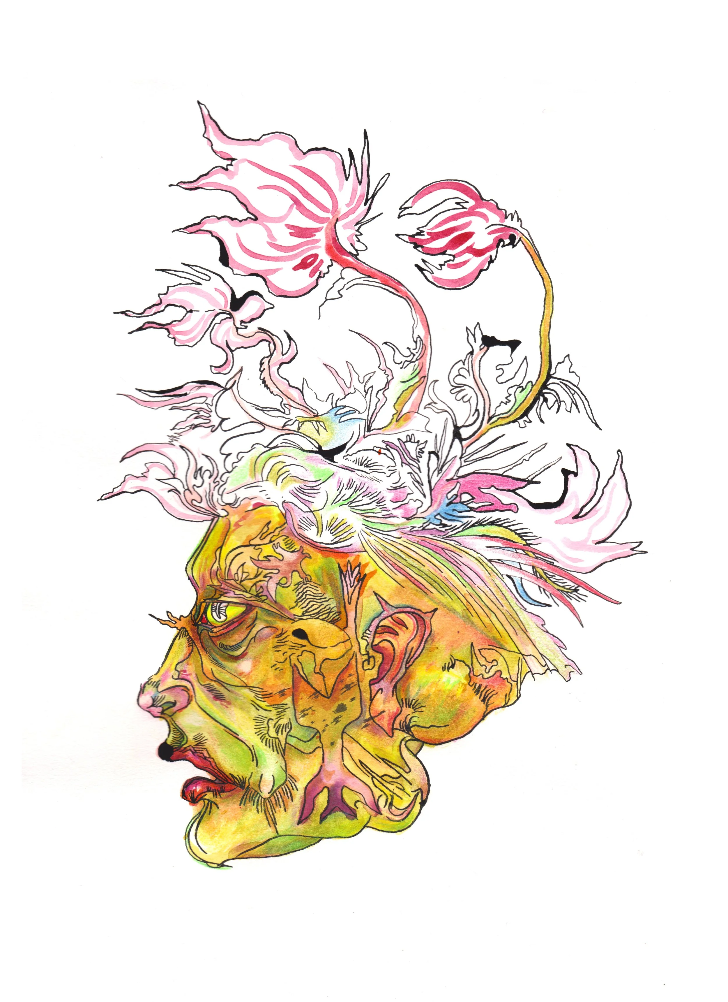 The Blossoms of my Hoary Hair (2020) Pen, Ink, Crayon & Watercolour on Paper