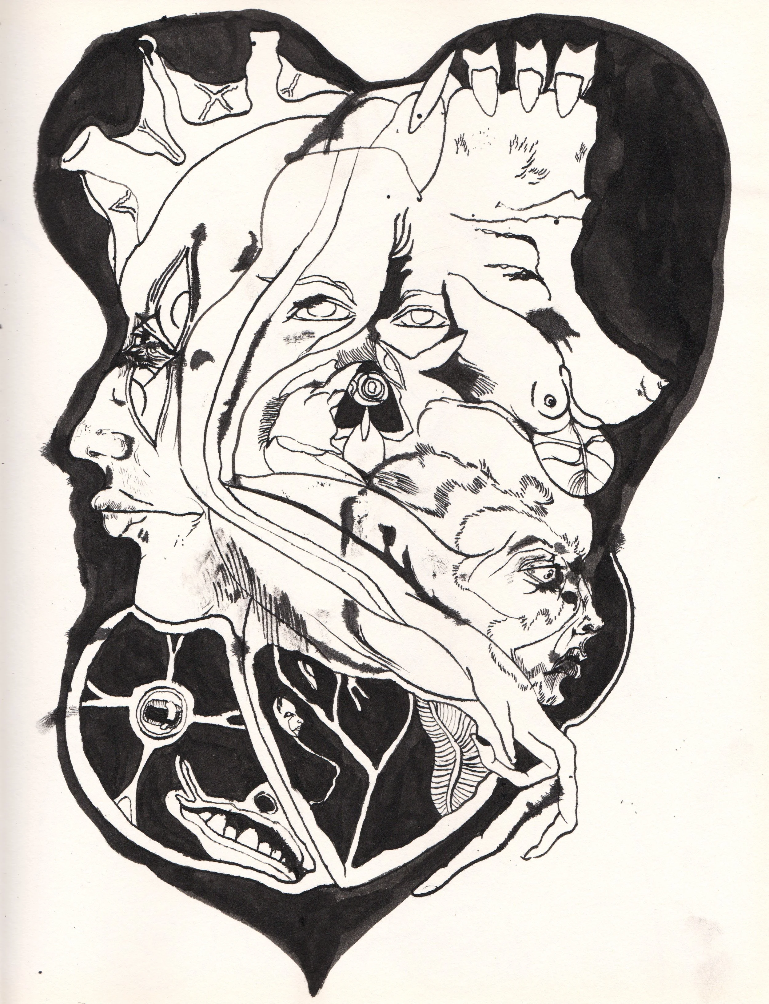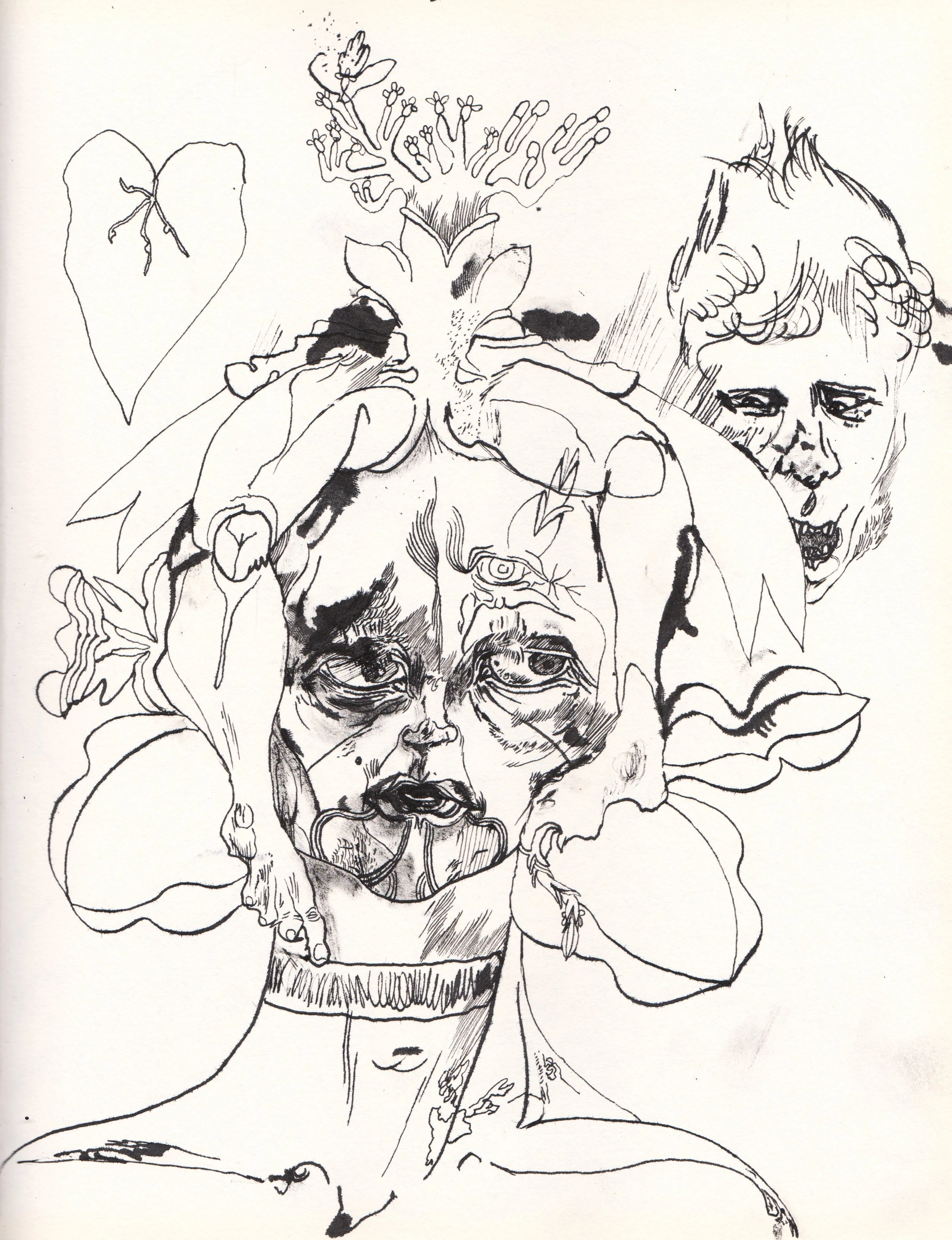 A selection of pages from ‘Liber Ardere I (The Red Book)’ (2023), pen & ink on paper. Inspired by The Red Book: Liber Novus by Carl Jung - these drawings have grown from association and cross-pollination, embracing spillages and chance marks, there is beauty in error.