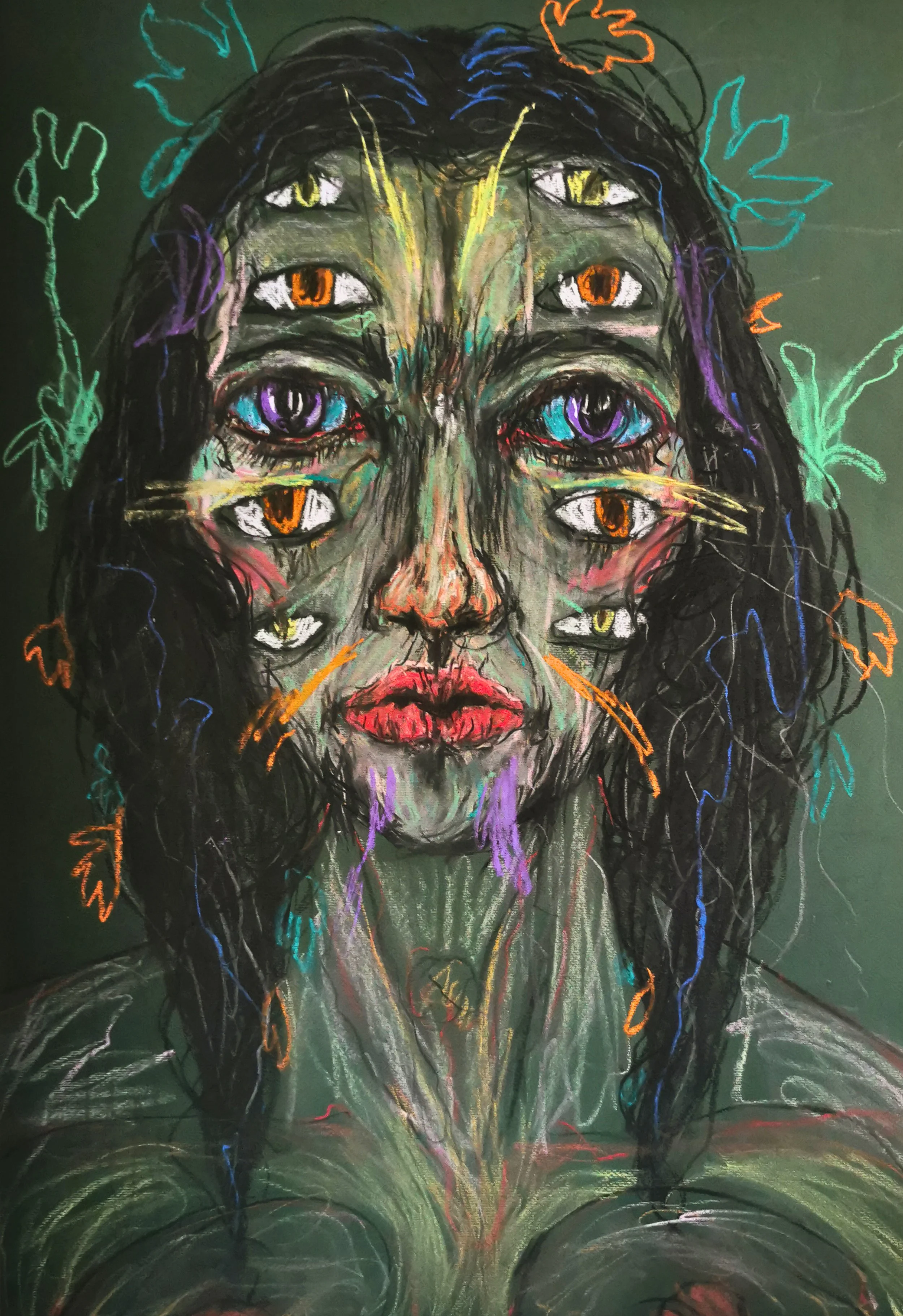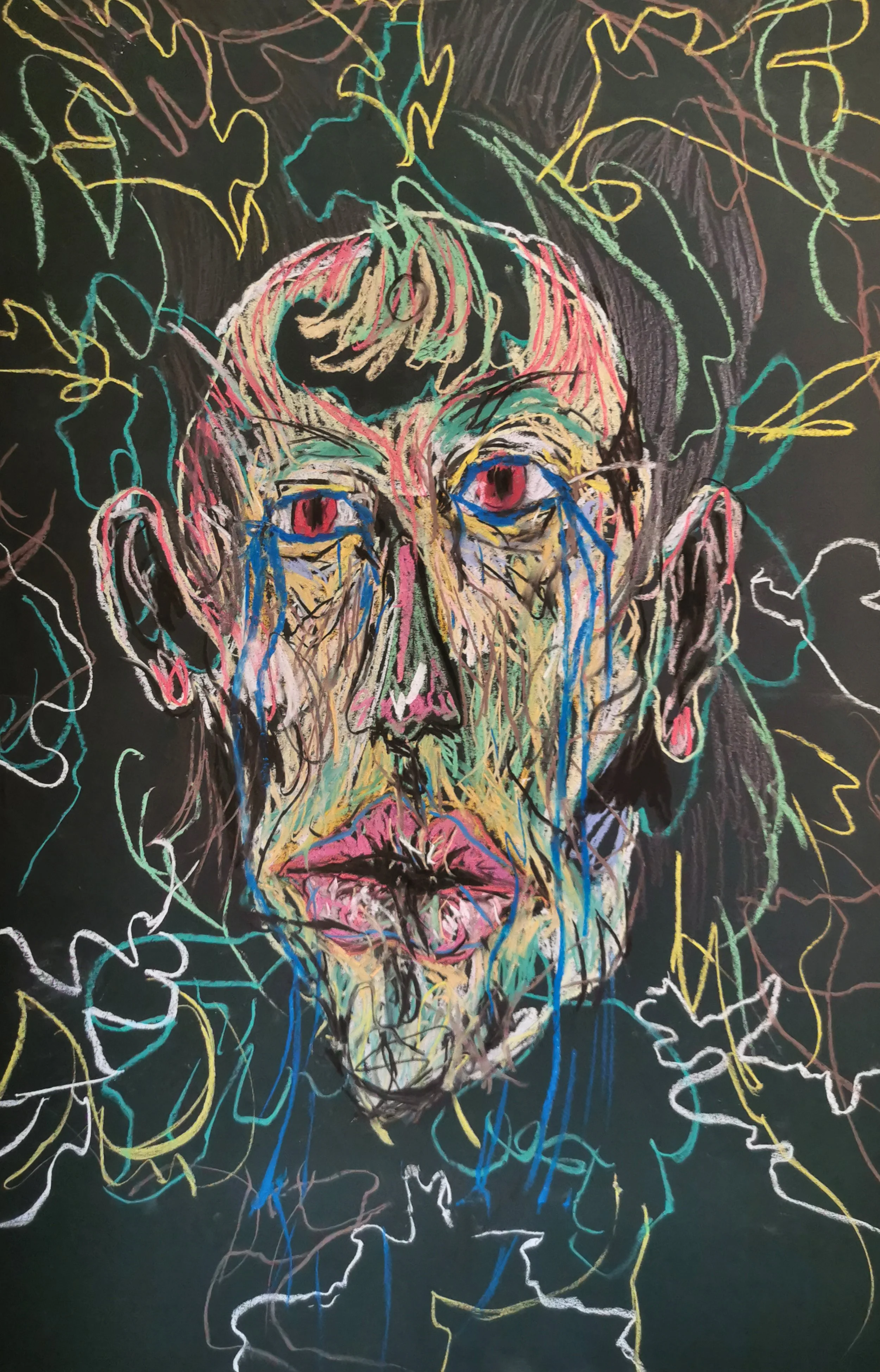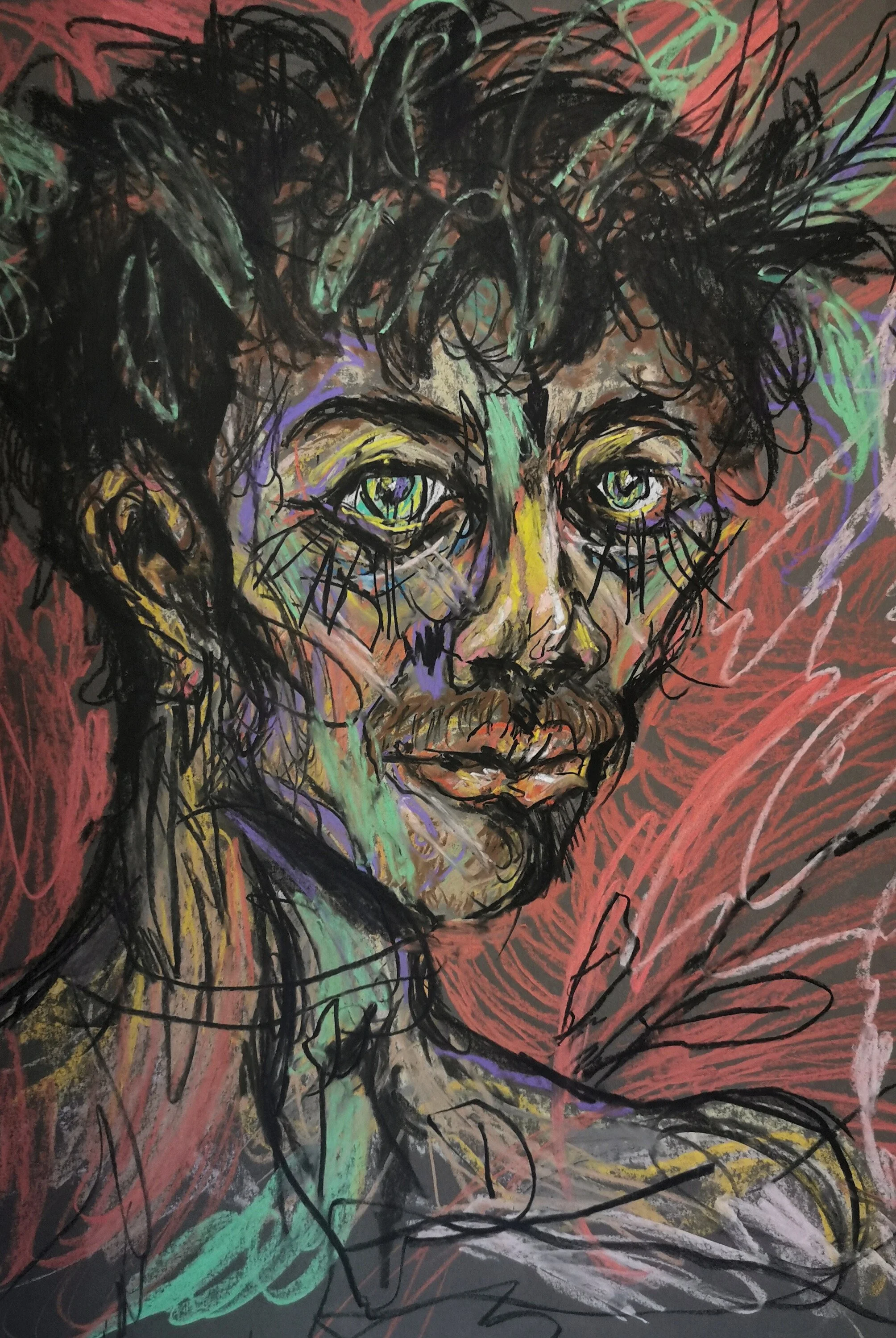 Visionary portraits made, after Blake, late at night and channeling figures from the sub-conscious, the historical, mythical, archetypal, biographical and so on, and so on. Chalk pastel, charcoal & oil pastel on paper (2025).